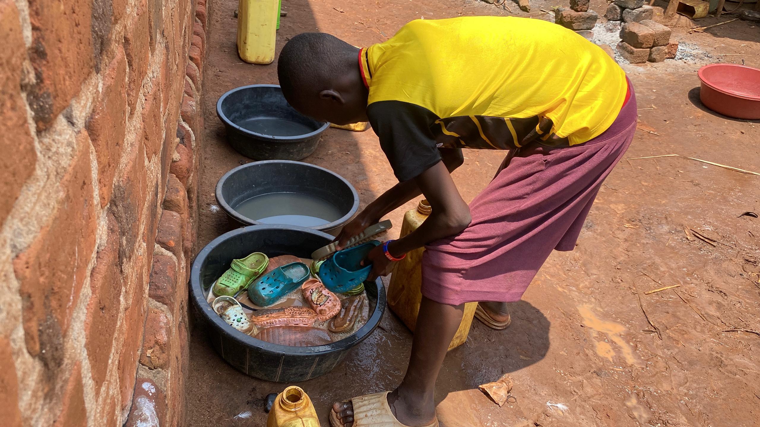 (pictured) Kennedy and Sofia are siblings. They both were absent from school on this day because their uniforms were dirty. They stayed away from school because they had to look for water to wash their clothes.